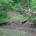 From Brush Ridge road over the summit and down to Black Lick Run we cut tons of low branches in May 2025, which were making the trail unusable on horseback. Some of it is like riding in a tunnels of trees now! Trail footing is quite good, shale and grass. The descent to the stream is considerable, but not unreasonable, and there are some fun ups and downs.